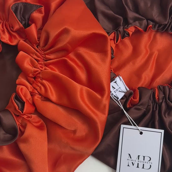 Introducing Mimi's Reversible Satin Hair Bonnet, the essential nighttime accessory designed to protect your hair and maintain its health and style effortlessly.