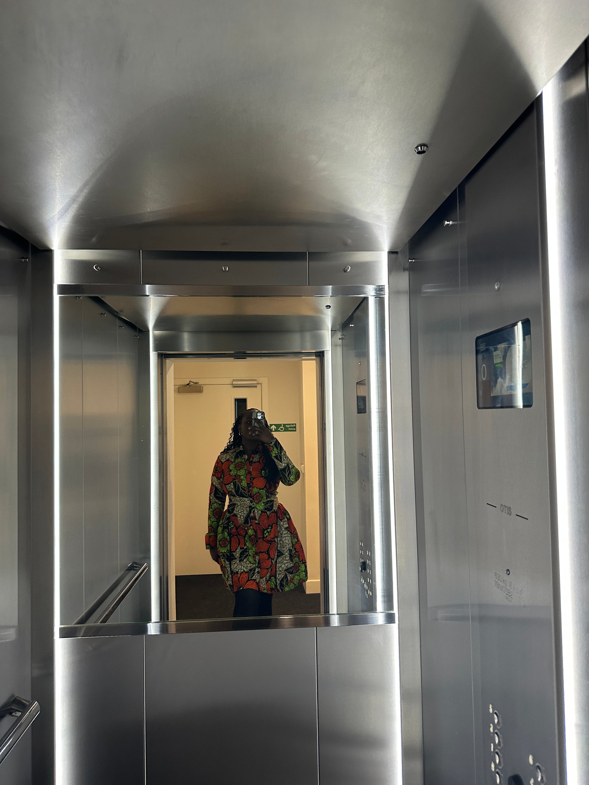 Styling Tip: Pair with neutral or metallic heels for a sleek and polished look with or without a black tight, Add gold hoop earrings or geometric jewelry to emphasize the bold patterns of the dress. Opt for a clutch bag to complete the outfit with effortless sophistication.